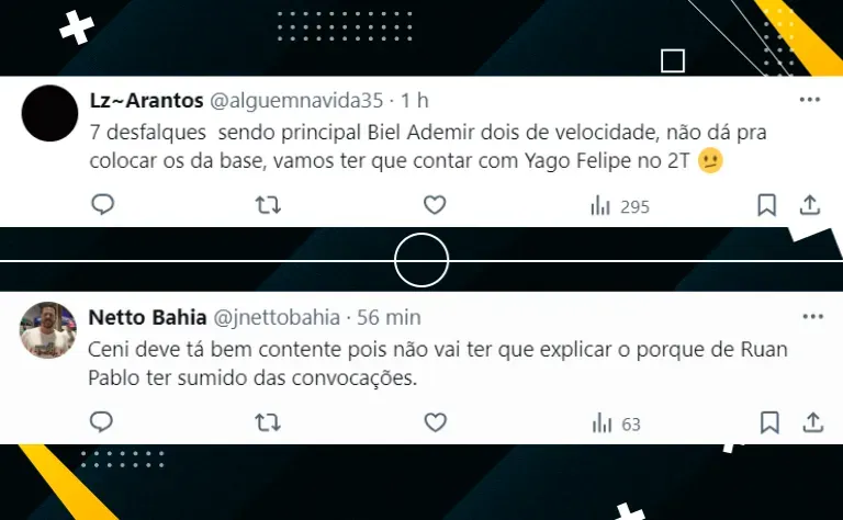 Todavia, o camisa 10 tem grandes chances de começar a partida no banco de reservar. Everton acabou saindo ainda no primeiro tempo do BaVi após ter batido acidentalmente com o olho no joelho do jogador Rubro-negro.