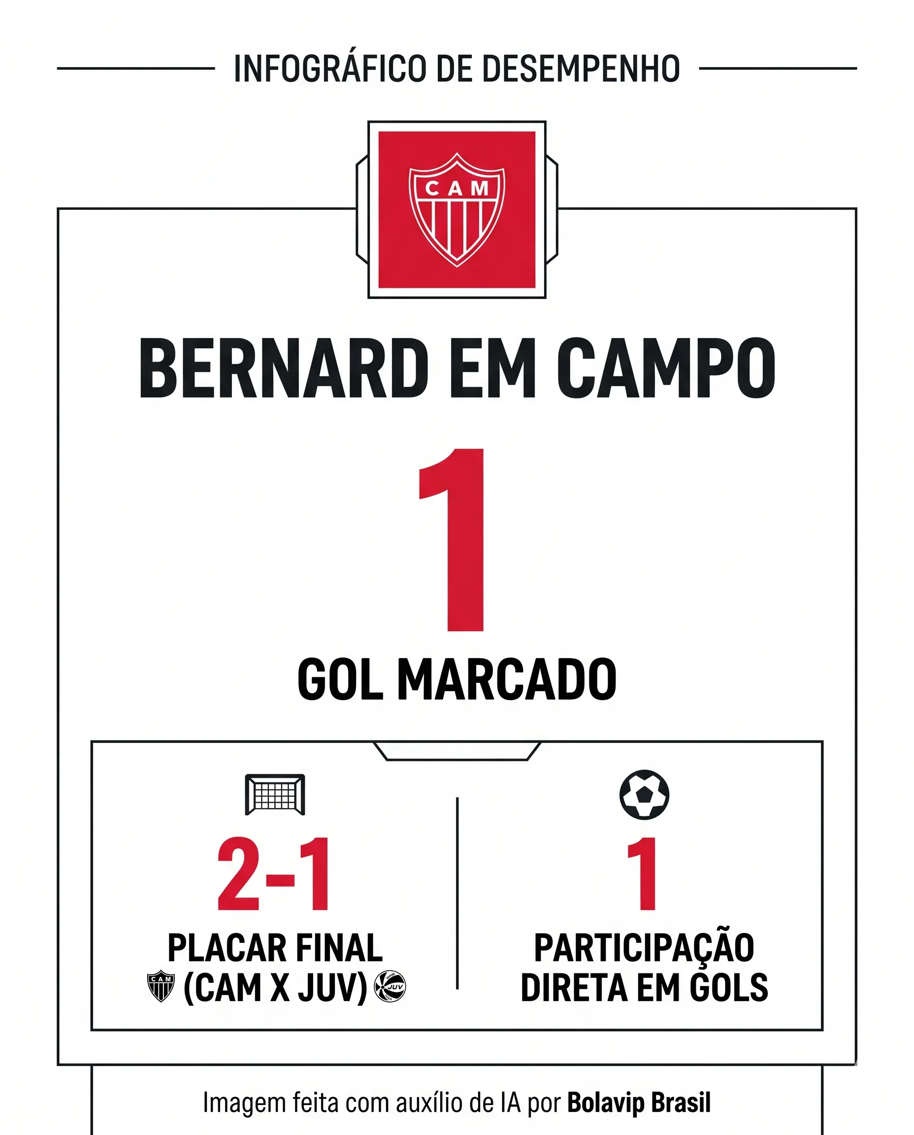 O Atlético Mineiro voltou a vencer e, nesta quinta-feira (16), derrotou o Juventud, do Uruguai, por 2 a 1 na Arena MRV, pela segunda rodada da fase de grupos da Sul-Americana. O primeiro gol da partida foi marcado pelo atacante Bernard, que acabou chamando atenção pela comemoração. Após balançar as redes, o jogador levou as mãos aos ouvidos em gesto direcionado à torcida, pedindo mais apoio após vaias antes do gol.
