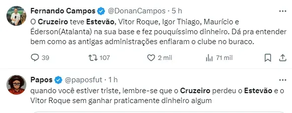 Reações dos torcedores do Cruzeiro a fase de Estevão: