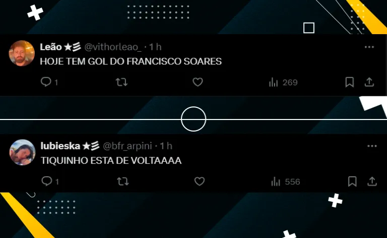 A última partida de Tiquinho foi o empate por 1 a 1 com o Bahia, pelas oitavas da Copa do Brasil, em 30 de julho. Desde então, Igor Jesus e Carlos Alberto, que desfalca o Alvinegro na noite desta quarta-feira por não ter sido inscrito no mata-mata da Libertadores, têm revezado no comando do ataque.