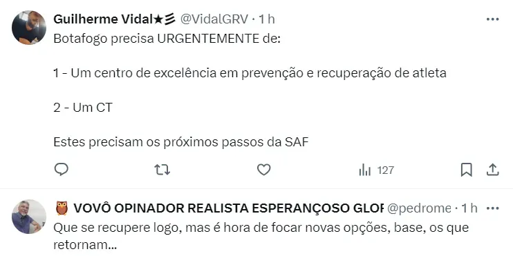 Ao que tudo indica, Jeffinho deve realizar o tratamento em até três períodos, inclusive na casa do atacante à noite. Vale lembrar que, em fevereiro, ele já havia sofrido uma lesão no adutor da coxa direita, ficando fora por um mês e meio.
