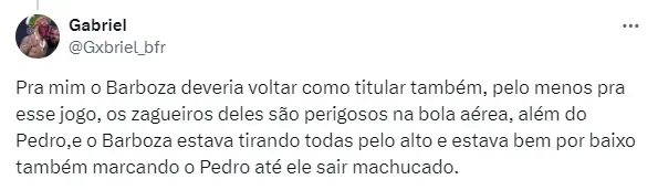 Diante deste cenário, o treinador deve realizar mudanças no time titular para o clássico. De acordo com informações apuradas pelo GE, Danilo Barbosa deve começar o jogo como titular e, além disso, Eduardo será a referência no ataque na vaga de Tiquinho.