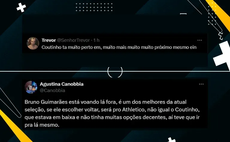 “Vamos ver o que vai acontecer. Feliz pelo Couto, é um cara sensacional. Com certeza, o Vasco muda de patamar. Fico até sem palavras para dizer, é um craque, um gênio, espero que ele dê uma solução lá”, disse Bruno Guimarães.