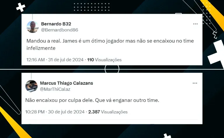 “Para nós seria importante ter o James no time, para ganhar a Libertadores e a Copa do Brasil. Se o melhor era sair, estou com ele. Mas é uma pena que ele não se encaixe no time, porque hoje faz muita falta”, finalizou o atacante.