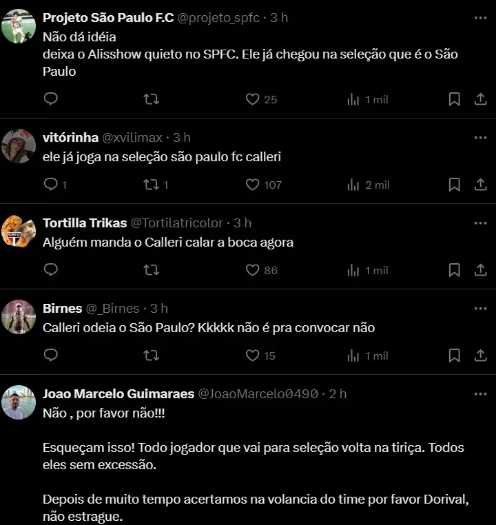 Então, após a partida, Calleri estava passando pela zona mista, enquanto Alisson estava dando uma entrevista e fez questão de mandar uma mensagem para Dorival Júnior, ex-treinador do São Paulo e atualmente à frente da Seleção Brasileira.