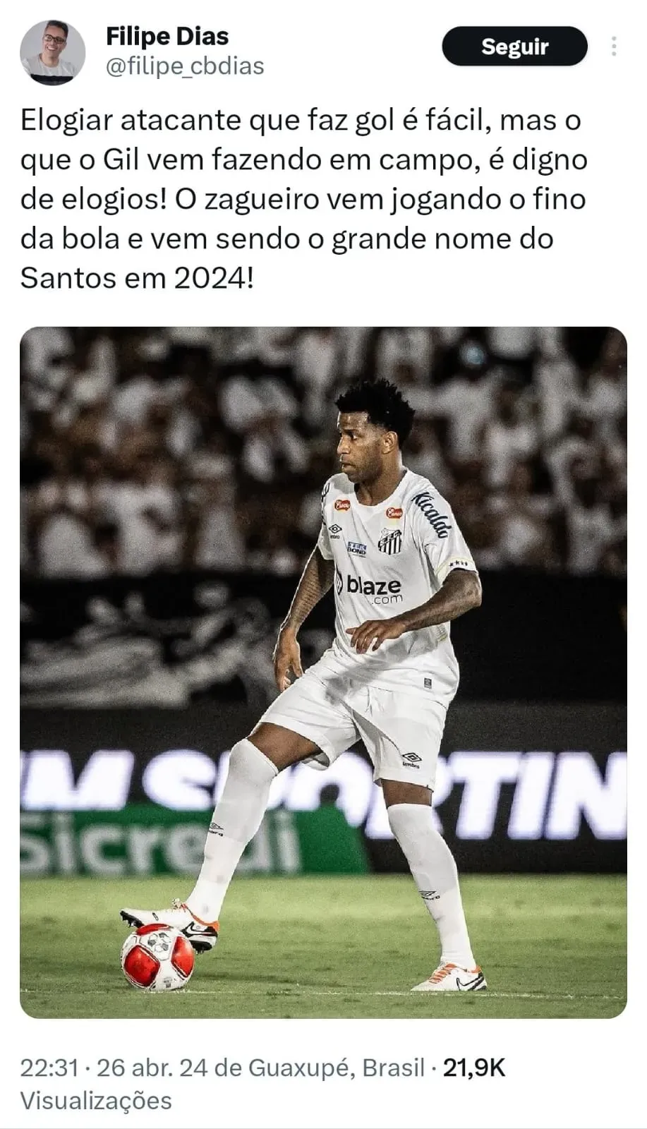Aos 36 anos, o defensor chegou do Corinthians sob desconfiança, mas devido a sua boa atuação acabou conquistando o torcedor. Em entrevista ao podcast Benja Me Mucho, o técnico Fábio Carille revelou que entrou em contato com Gil, que na ocasião defendia o rival, antes mesmo de acertar com o Santos.
