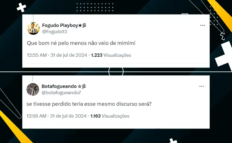 Em contrapartida, o tema do momento na torcida, além de Artur Jorge, é Rogério Ceni. Treinador do ‘rival’, em entrevista coletiva, foi na ‘contramão’ dos demais e rasgou elogios para o gramado sintético, que já foi alvo de polêmicas em outras ocasiões. A declaração repercutiu entre os botafoguenses.