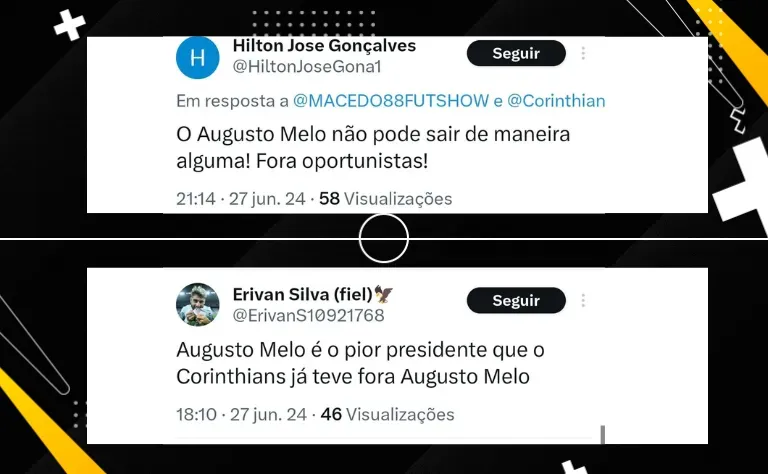 “Erros quase todos devido à péssima administração apresentada até o momento. Não é uma conspiração orquestrada por ninguém. Falhas técnicas de gestão saltam aos olhos. Do jeito que a coisa vai, vem por aí uma medida drástica: demissão do próprio Augusto ou o tão temido impeachment.”, afirmou o jornalista, que encerrou demonstrando preocupação com o clássico contra o Palmeiras: “Uma derrota para o Palmeiras no dérbi poderá ter consequências terríveis para a comunidade corintiana.”, completou.