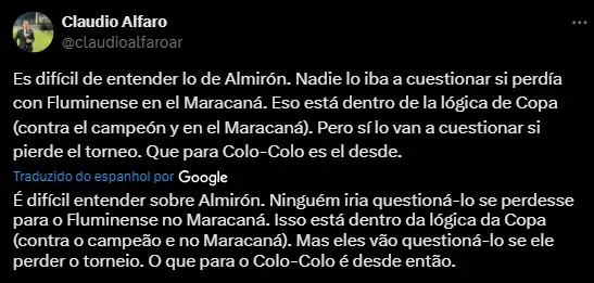 A equipe do Colo-Colo tem um voo programado para o Rio de Janeiro na tarde deste domingo. Na segunda-feira, eles devem realizar um treinamento no Rio, embora o local exato ainda não tenha sido definido.