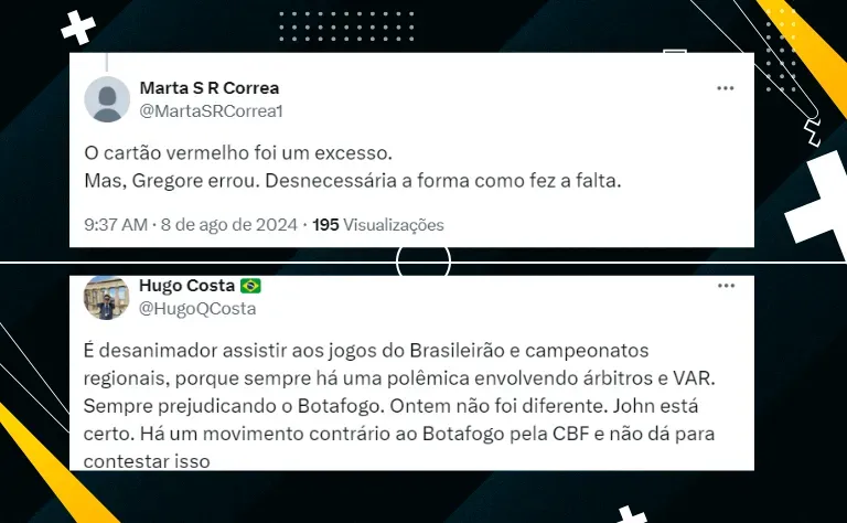 Em contrapartida, o tema do momento no Clube é Gregore. O atleta foi expulso de forma ‘polêmica’ na última quarta-feira (7), John Textor até chegou a se pronunciar sobre o assunto nas redes sociais. Dessa forma, o comentarista Celso Unzelte, da ESPN, afirmou que discorda da expulsão do volante.