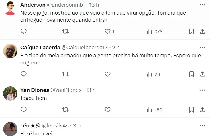 “É um talento frustrante, porque já foi para Espanha, Turquia, Argentina. Com a mesma aplicação do irmão dele, seria um jogador muito interessante. Tomara que consiga manter esse nível de produção”, completou.