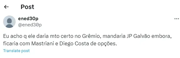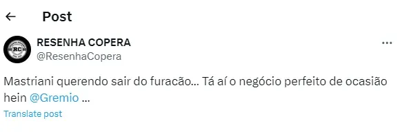 Isso porque, após ‘descobrirem’ que Gonzalo Mastriani está irritado por ser banco no Athletico-PR, a torcida gremista decidiu agir e já quer o gringo chegando em solo gaúcho. Sendo assim, os seguintes comentários estão bombando na web gremista (SIC).