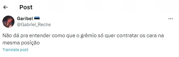 Agora, após descobrirem que o ‘veterano’ está próximo de jogar no escrete de Portaluppi, boa parte da torcida rasgou essa possível vinda. “Ele já está velho, não vai agregar nada ao time”. “Chega de trazer volantes, precisamos de um novo meia”.