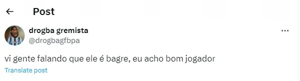 Sabendo que o jogador não vive uma grande fase no Palmeiras, alguns adeptos gremistas dispararam na web (SIC). “Vi alguns falando que ele é bagre, porém, seria um bom jogador para compor nosso elenco, é esforçado demais”. “O cara iria dar certo por aqui, quero a contratação”.