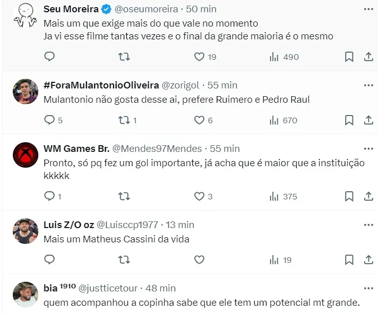 Leia mais: Torcida crava ‘fim da linha’ para meio-campista de António Oliveira no Corinthians