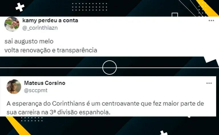 Aida citando a derrota, além da pressão contra Yuri Alberto e Pedro Raul, nas últimas horas, Augusto Melo foi ‘cobrado’ na web. Sabendo que o clube corre grandes riscos de ser rebaixado para a segunda divisão, a torcida mandou um recado para o mandatário.