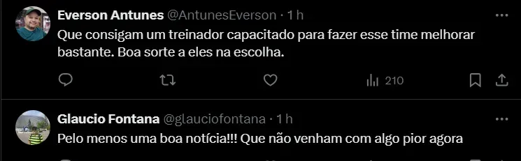 A princípio, o Coxa descartou nomes como Alex e Mano Menezes recentemente. Desse modo, segue a procura de um novo treinador, Paulo Autuori e William Thomas comandam essa busca.