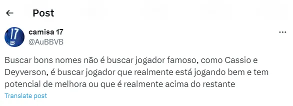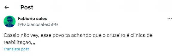 Isso porque, após o veterano ser ‘cotado’ para desembarcar em solo mineiro, parte da torcida da Raposa não gostou nada dessa possibilidade e tratou de vetar a contratação. Sendo assim, os seguintes comentários estão bombando na web mineira (SIC).