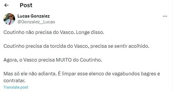 Todavia, mesmo ainda lamentando o doloroso revés do final de semana, nas últimas horas, um assunto conhecido está ‘fervendo’ nas alamedas do Vascão: trata-se do famoso mercado da bola. Sobre o tema, uma atualização envolvendo Coutinho veio à tona.