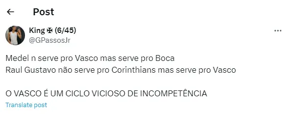 “O Vasco querer um cara desse é tirar com a cara do torcedores, jogador caro, contestado e fraco”. “Ele é ruim demais, prefiro que vá na Série B e contrate uns dois destaques de lá”. “Esse aí é um baita bagre, nossa direção não pode fazer isso”.