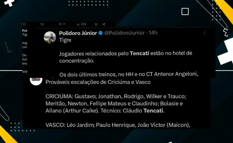 Neste momento, o Vasco da Gama é o 10º colocado, com 27 pontos somados. Na última rodada, o time venceu o Fluminense e vem embalado para o duelo contra o Criciúma.