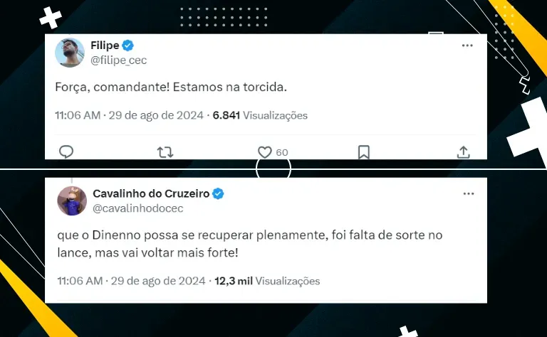 “O Cruzeiro informa que o atacante Juan Dinenno foi submetido a exames, na manhã desta quinta-feira, que diagnosticaram lesão no ligamento cruzado anterior do joelho direito”, iniciou a Raposa em nota no X.