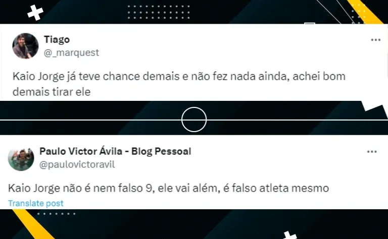 “Kaio já teve chance demais e não fez nada ainda, achei bom demais essa escolha do nosso treinador pelo Arthur Gomes“. “O cara não vem jogando nada nos últimos jogos, precisa mesmo ser reserva no jogo decisivo da Sul-Americana“.