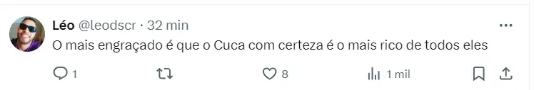 Ele se apresenta como o próprio Cuca, alegando que trocou de número, e pede para ser adicionado na agenda dos contatos. Após estabelecer esse contato inicial, o golpista começa a solicitar dinheiro, geralmente usando a desculpa de que está enfrentando dificuldades para realizar transações bancárias devido a problemas com o aplicativo do banco.
