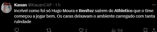 Cuca compartilhou que o jogador paraguaio Benítez recebeu uma proposta e sua situação deve ser resolvida no início da próxima semana. Além disso, o volante Hugo Moura, que está sendo sondado pelo Vasco, também deve deixar o clube.