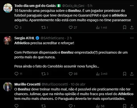 “O Benítez recebeu uma proposta e vamos definir, assim como outros jogadores também. Em breve vamos resolver a situação desses jogadores”, revelou o técnico Cuca.
