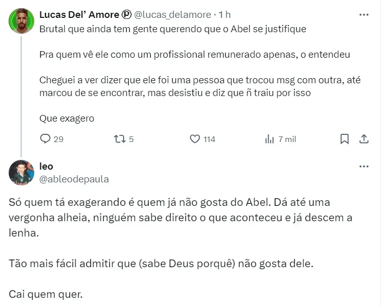 “O caso do Abel, o Abel assinou um contrato com outro time e não comunicou o Palmeiras aparentemente. A gente vai lembrar no dia 8 de dezembro o Palmeiras soltou uma nota que fez uma reunião com Abel Ferreira que o trabalho dele continuava e que o Abel não manifestou que tinha nenhuma outra proposta”, seguiu.