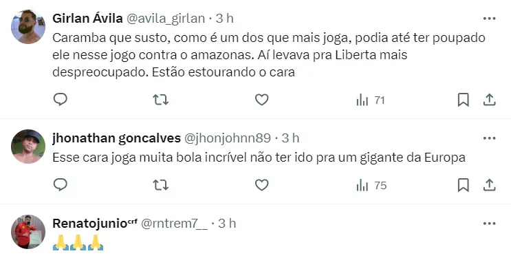 Em contrapartida, o tema do momento no Clube é De La Cruz. Isso porque o uruguaio, que é um dos principais jogadores da equipe, precisou ser substituído na partida diante do Amazonas, o que gerou preocupação na torcida.