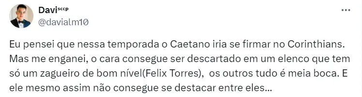 Leia mais: Torcida crava ‘fim da linha’ para meio-campista de António Oliveira no Corinthians