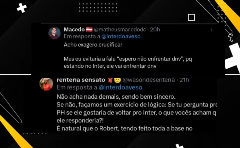 Caso ele siga no grupo, é provável que ele continue seja utilizado normalmente pela comissão técnica. Apesar de manter a postura de estar ao lado do jogador, o UOL informou também que a diretoria do Inter teme que a declaração de Robert Renan impacte no ambiente externo.