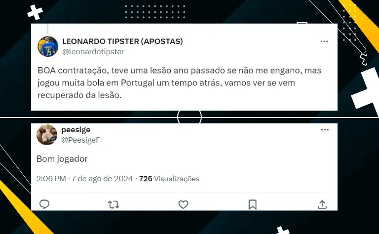 “O Tabata é uma questão de documentos faltantes. Acredito que nas próximas horas estaremos nos comunicando sobre o atleta”, iniciou. Na sequência, ao ser questionado sobre outros nomes especulados, ele se ‘esquivou’.