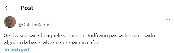 Todavia, mesmo com o time em boa fase, nesta quarta-feira (3), a torcida não ‘titubeou’ e tratou de rasgar o verbo contra um jogador que está escanteado no Peixão: trata-se de Dodô. Sendo assim, os seguintes comentários vieram à tona (SIC).
