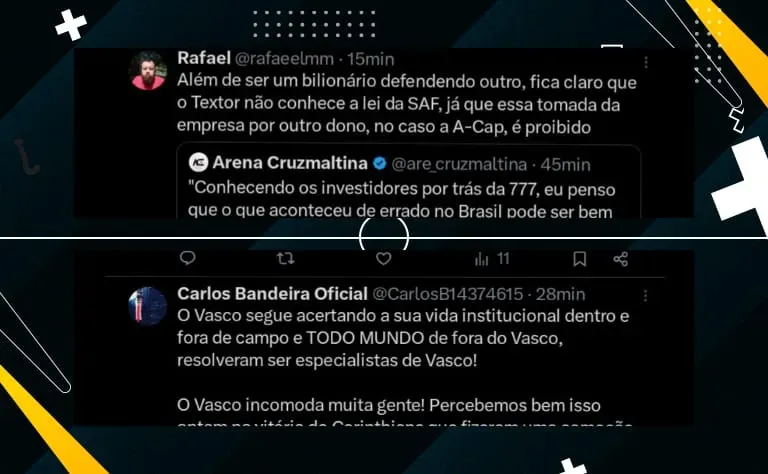 Tudo isso se deu, após a polêmica envolvendo a empresa que adquiriu a SAF do Vasco. O norte-americano deu continuidade dando sua visão sobre o assunto do rival: