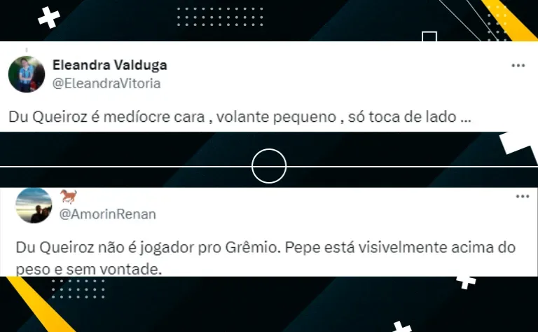 Após entrar durante a partida, o volante realizou uma apresentação bem abaixo do esperado e foi criticados pela torcida gremista nas redes sociais. Sendo assim, os seguintes comentários contra o jogador de 24 estão bombando na web (SIC).