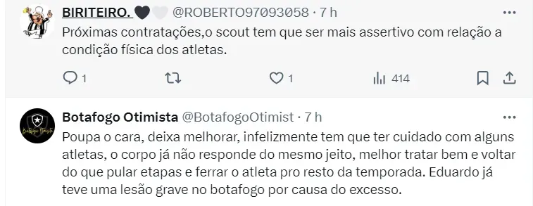 O departamento médico da equipe carioca tem trabalhado para deixar o jogador à disposição de Artur Jorge contra o Universitário. Vale ressaltar que o Alvinegro não volta para o Rio de Janeiro e já vai direto para Lima.