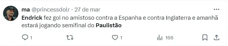 A possibilidade de conquistar um título antes de sua partida é um incentivo adicional para Endrick, cuja trajetória no Palmeiras já é marcada por conquistas importantes, com ele sendo protagonista em algumas.