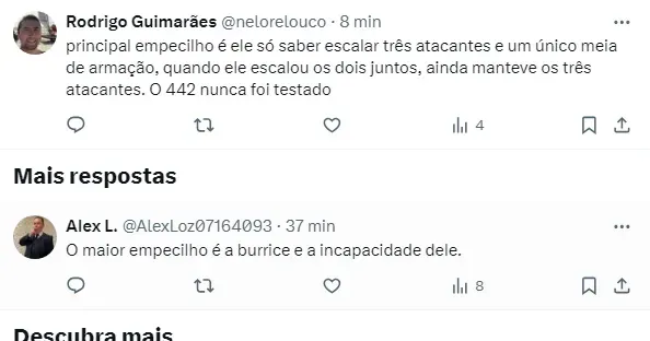 “O Igor (Coronado) e o Rodrigo (Garro) já jogaram juntos duas vezes como titulares, contra o Juventude e Red Bull Bragantino. É evidente que o talento sempre terá espaço, mas existe uma coisa que se chama equipe e nunca irá se priorizar da equipe, quando eu achar que a equipe estará equilibrada com os dois juntos é ok”, relatou.