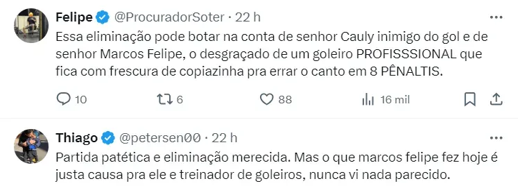 Apesar disso, o assunto segue sendo a eliminação do último final de semana. Marcos Felipe foi muito criticado pelos torcedores do Tricolor Baiano, porém, em entrevista, Rogério Ceni saiu em defesa do goleiro.