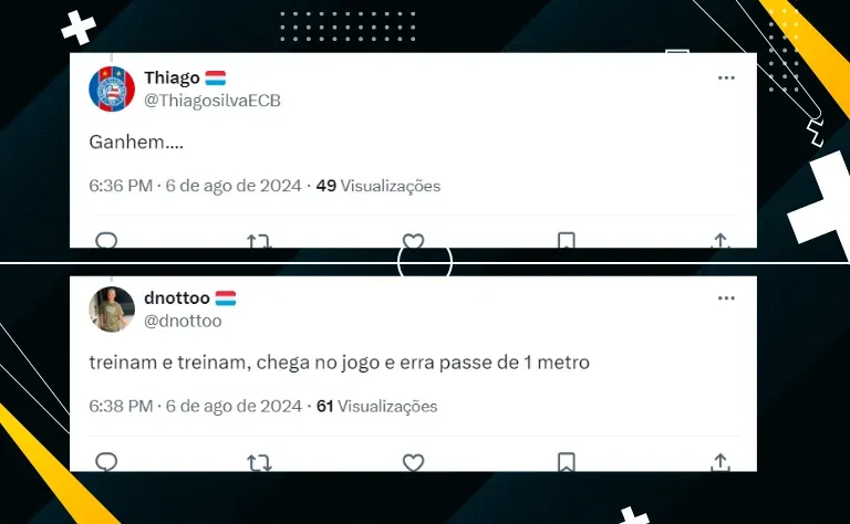 Porém, conforme citado anteriormente, o foco do Bahia está na decisão das oitavas de final Copa do Brasil contra o Botafogo. O duelo entre as equipes está marcado para esta quarta-feira (7), às 19h, na Casa de Apostas Arena Fonte Nova.