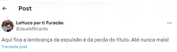Ainda citando essa ‘recente’ baixa no escrete comandado pelo técnico Cuca, nas últimas horas, o jogador deu uma declaração relembrando sua passagem pelo Furacão. Sendo assim, a seguinte fala já chegou nos ouvidos dos torcedores.
