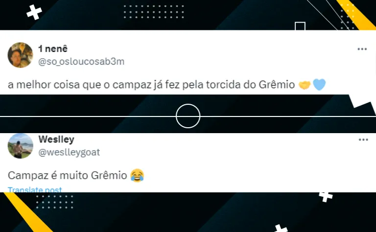 “O cara parece que veio para a partida de forma diferente, estava com muita raça para encarar Alan Patrick e cia”. “Ele brilhou contra o nosso maior rival, com isso, já quero o meia de volta ao nosso clube”. “Campaz é fera, marcou justo contra os morangos”.