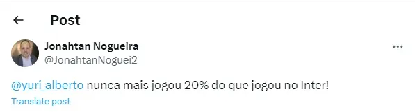Todavia, mesmo ainda comemorando o importante triunfo, nas últimas horas, um assunto em relação ao jogo está bombando nas alamedas do Clube do Povo: trata-se da declaração de Yuri Alberto, atacante que passou pelo Inter e atualmente joga pelo time paulista.