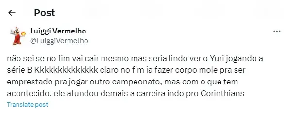 Sobre o caso, após perder para o Maior do Sul, o centroavante deu a seguinte declaração sobre o momento complicado que o Timão vive na competição. Sendo assim, a seguinte fala do ‘judas’ chegou aos ouvidos da torcida colorada.