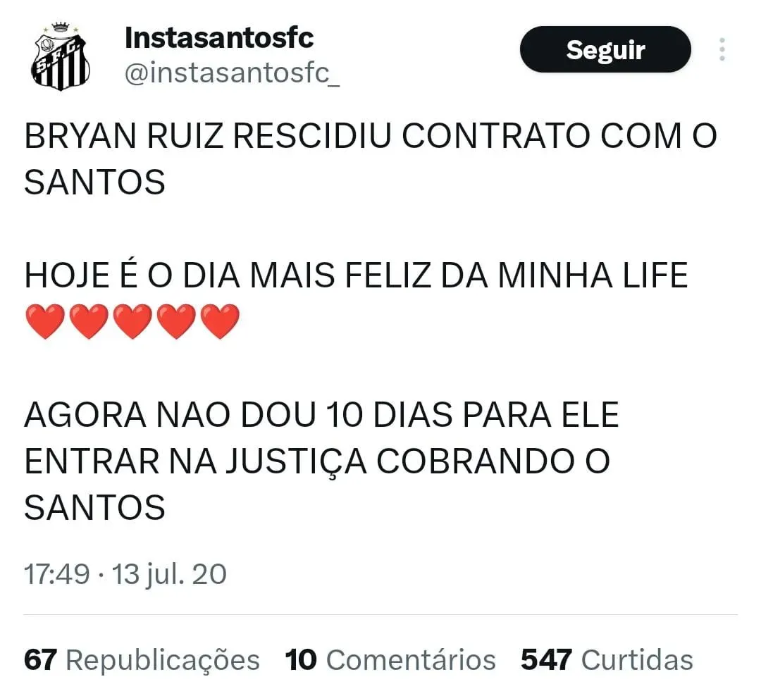 Enquanto o clube se preocupa com a decisão, um ex-meia Bryan Ruiz, que passou pelo Alvinegro Praiano entre 2018 e 2020 virou notícia ao abordar diversos temas em entrevista ao A Bola. Um desses assuntos foi a sua relação com Jorge Jesus, ex-técnico do Flamengo, com quem trabalhou no Sporting, de Portugal.