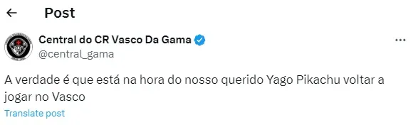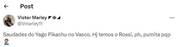 “Saudades desse cara no Vascão, hoje temos Rossi, Pumita e cia, regredimos!”. “Ele joga muito bem, espero que um dia volte para o nosso clube”. “O cara é diferenciado, tratou de colocar a bola embaixo do braço e jogou muito contra o Boca”.