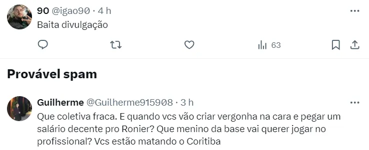 “Eu tenho meu próprio DNA, que bate com as ideias que o clube quer. Não é o que o Fábio quer, mas é o que o Fábio entende o que é melhor, assim como o clube. Os clubes estão se organizando para que não fiquem reféns dos treinadores. É isso que eu vejo acontecer no Coritiba”, disse.